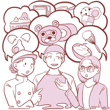 個人の方、異業種の方から上場企業まで幅広くお菓子に関わるお困りごとにお手伝いさせて頂いております。
